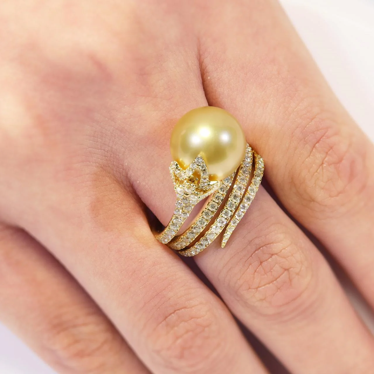 18ct Yellow Gold Diamond & Golden South Sea Pearl Ring