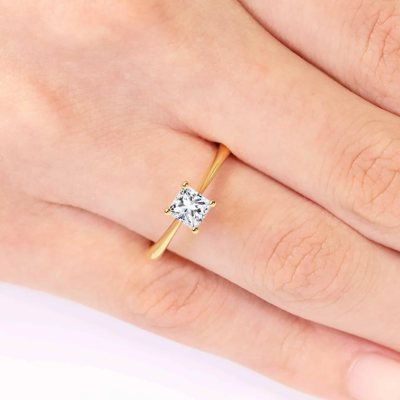 TORINO SIDE V - 18ct yellow gold 1.02ct K SI1 cushion cut four claw side v setting diamond engagement ring